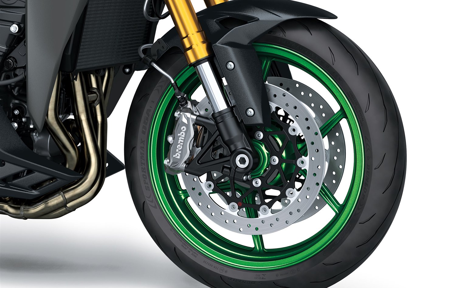 El modelo SE de la Z1100 incluye frenos Brembo con pinzas monobloque de montaje radial y discos Brembo, además de líneas de freno de acero trenzado y un amortiguador trasero Öhlins S46, que proporciona gran precisión y permite ajustes mediante un regulador remoto de precarga. Los neumáticos para 2026 son Dunlop Sportmax Q5A.