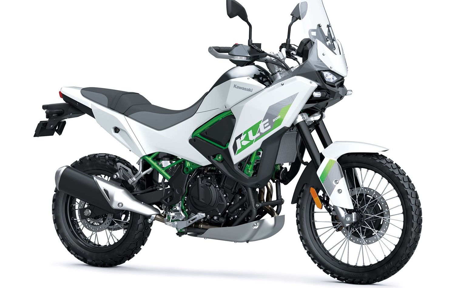 Diseñada para satisfacer a una amplia variedad de pilotos, la KLE500, que cumple con la normativa europea A2, cuenta con un asiento cuidadosamente diseñado inspirado en la aclamada familia KX, una relación entre los estribos y el manillar, y una elegante protección contra el viento y los elementos gracias a una pantalla ajustable en tres posiciones. La conducción fuera de carretera resulta natural gracias a una posición de conducción que es igualmente cómoda tanto de pie sobre las estriberas como sentado. Para los más observadores, los toques de diseño inspirados en las motos de motocross KX se evidencian en las tapas laterales largas y lisas y en el depósito de combustible delgado, que crean una interfaz perfecta con el piloto y facilitan la movilidad.